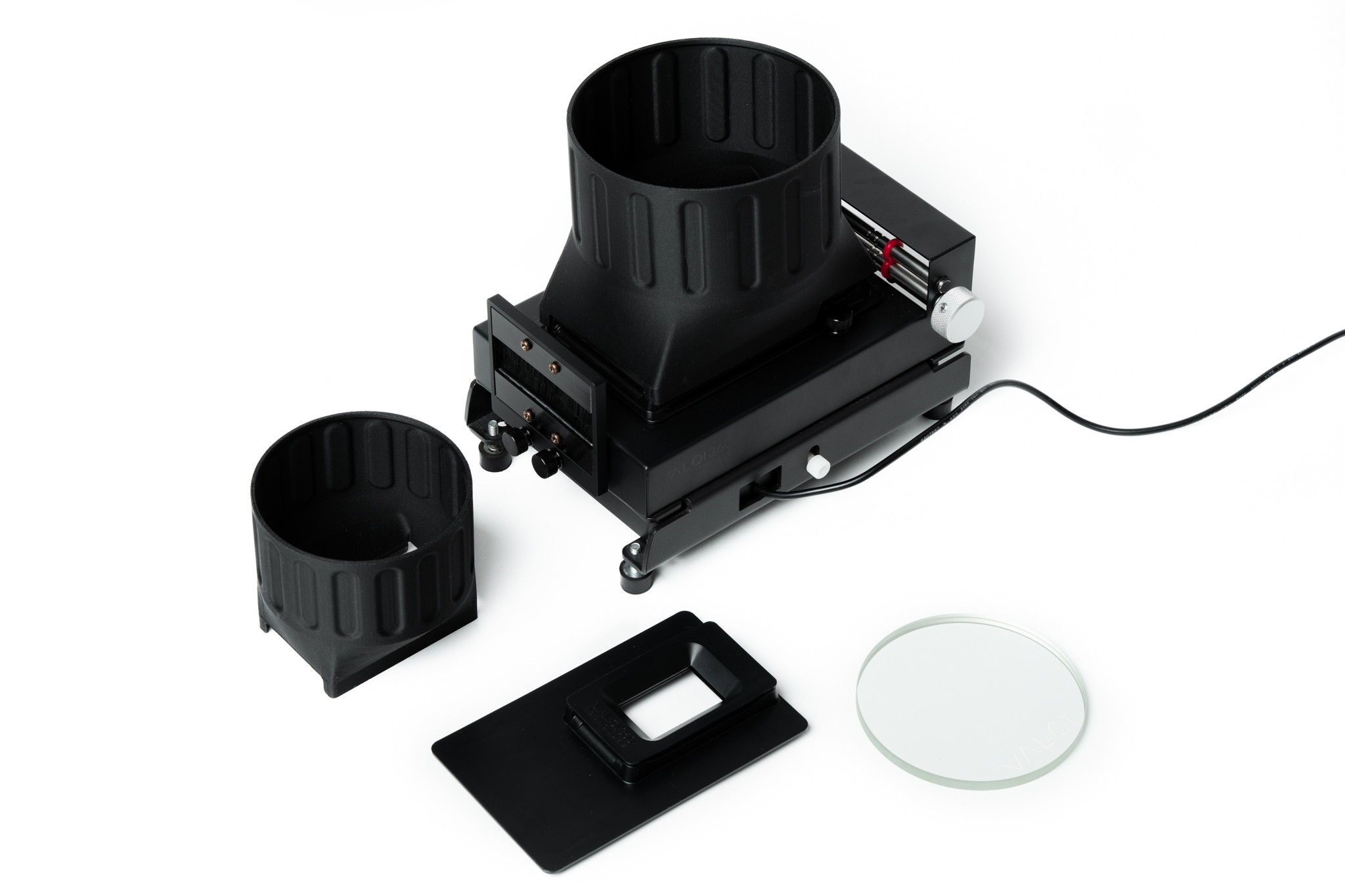 Additional holders, such as a holder for scanning sprockets on 35 mm film, can be added separately.