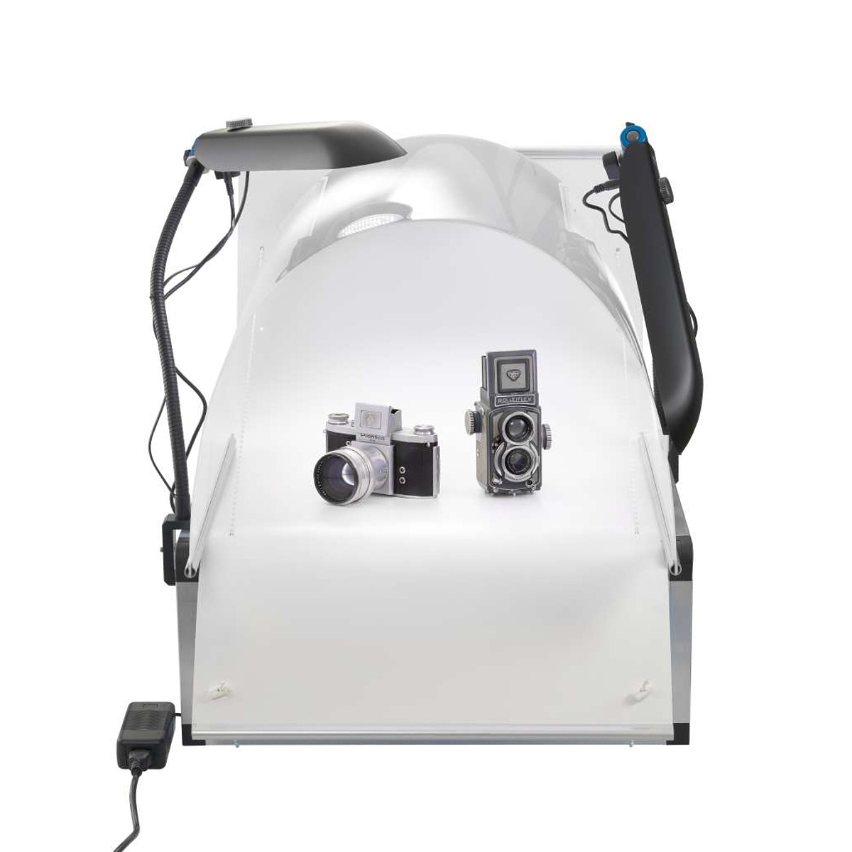 The applications are infinitely varied. You may want to catalogue your coin, glass or model collections, document jewellery for insurance purposes or take photos of products for an Internet auction. Whatever the job, you'll get better results with MagicStudio. Starting with just a small panel to form an arc, you can take stunning product shots of mobile phones, sunglasses or shoes. MagicStudio is equally useful on location or on the road. The components pack small and flat for easy transport, for example by car. Whether for quality assurance in the industry or service segment, for scientific work in the field or for a quick on-site session at your customer... MagicStudio ensures quality results. If your requirements change, a variety of smart accessories allows you to grow your MagicStudio to keep pace.