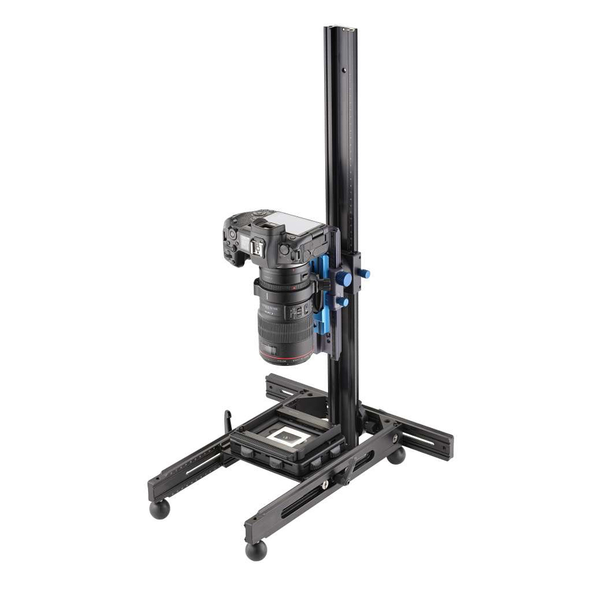 The slide and negative duplicator can be inserted directly into the variable guide rails of the copy stand and can therefore be positioned vertically or horizontally.